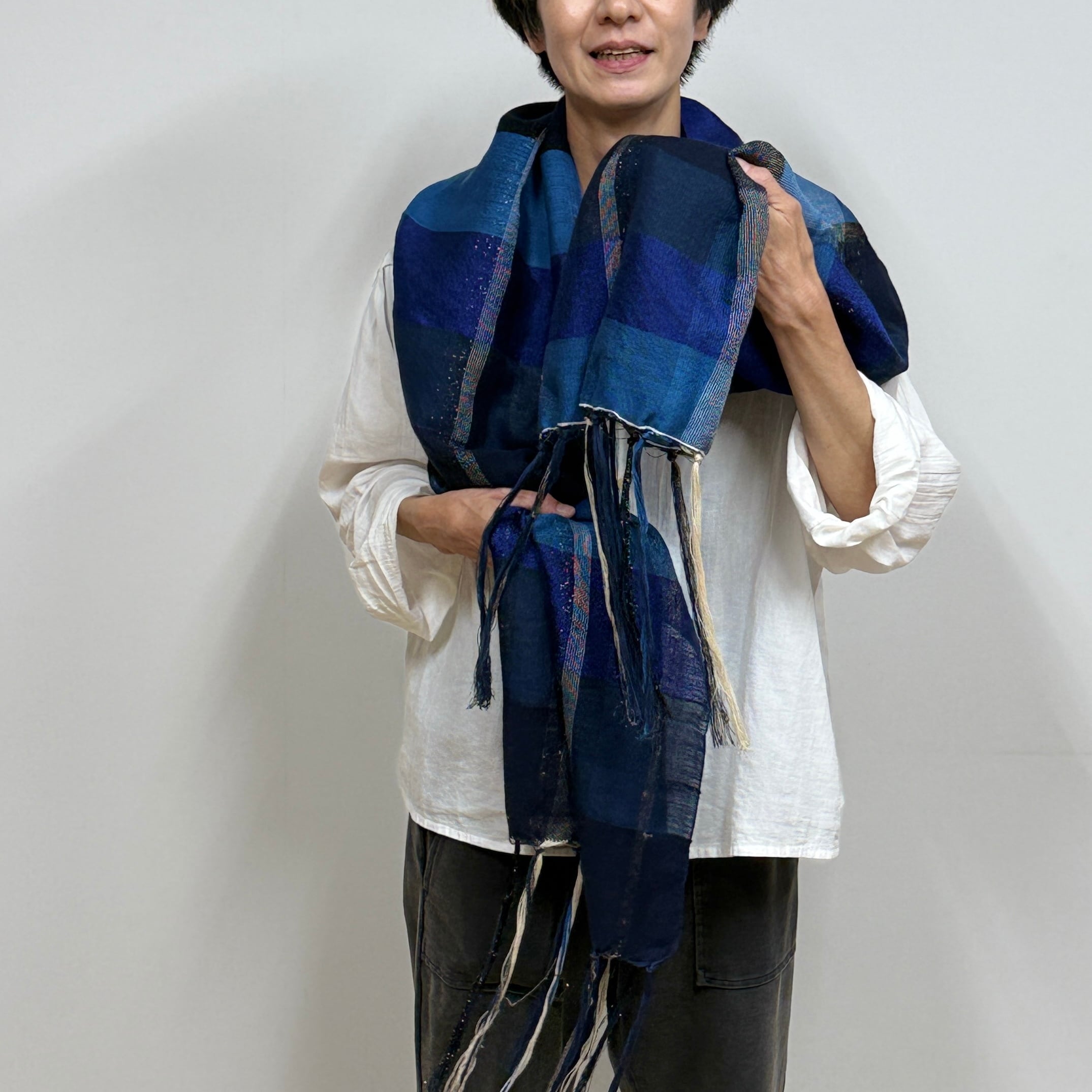 おしゃれに軽くワンポイントの差し色に使えるブルーショール